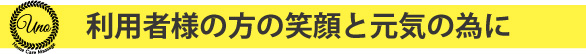どんなに良いリハビリやマッサージも、それを受けるご利用者様のお気持ちを大切にしていなくては効果が半減してしまいます。 神戸訪問マッサージ「UNO訪問治療院」では、まず、ご利用者様の日々の生活の中でのご希望・ご要望をよくお聞きし、一緒に身近な目標を設定していくことを大切にしています。その一つ一つの目標が実現していく中で、ご利用者様の心身は確実に回復し、笑顔につながると信じております。