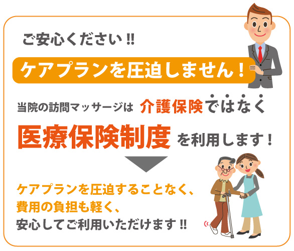 訪問マッサージ「UNO訪問治療院」のマッサージは、医療保険・健康保険が適用されるため、利用者様にも負担額が少なくマッサージを受けて頂くことが可能です。