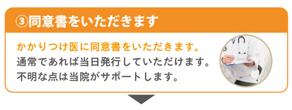 基本的にかかりつけの医師が同意してくだされば、当日もしくは数日で発行していただけます。